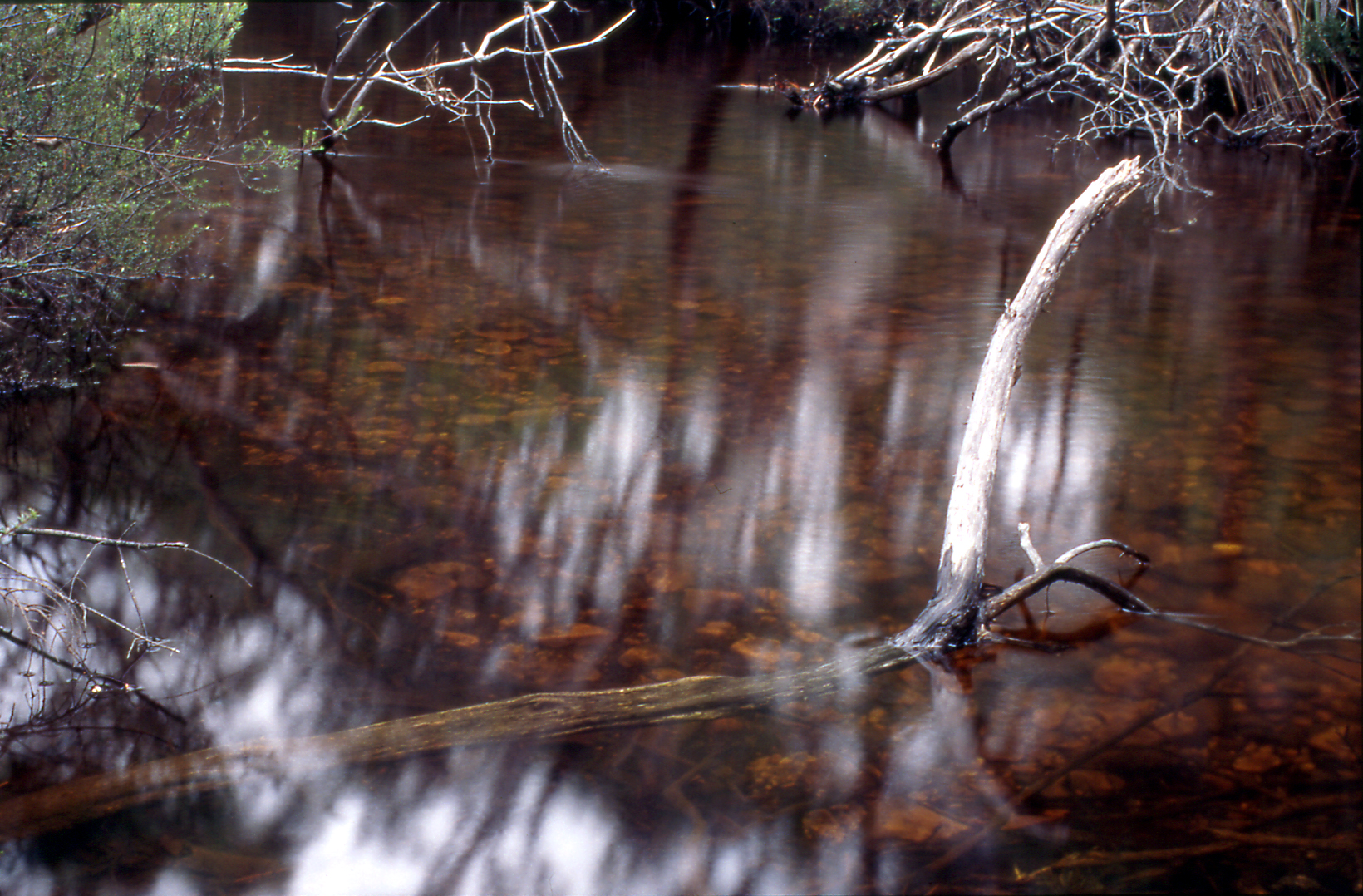 We settled on a compromise – a camp tonight closer to the car. Jane would dump the camping gear at the Anne River and trek the two kilometres to the car to bring more food. We set off mid-morning on a thankfully cooler, cloudier day. The return across the muddy plain was just as energy consuming but it was less frustrating, if only because I knew what to expect. I arrived in solitude at the Anne River late that afternoon. Jane was already well on her way to the car.