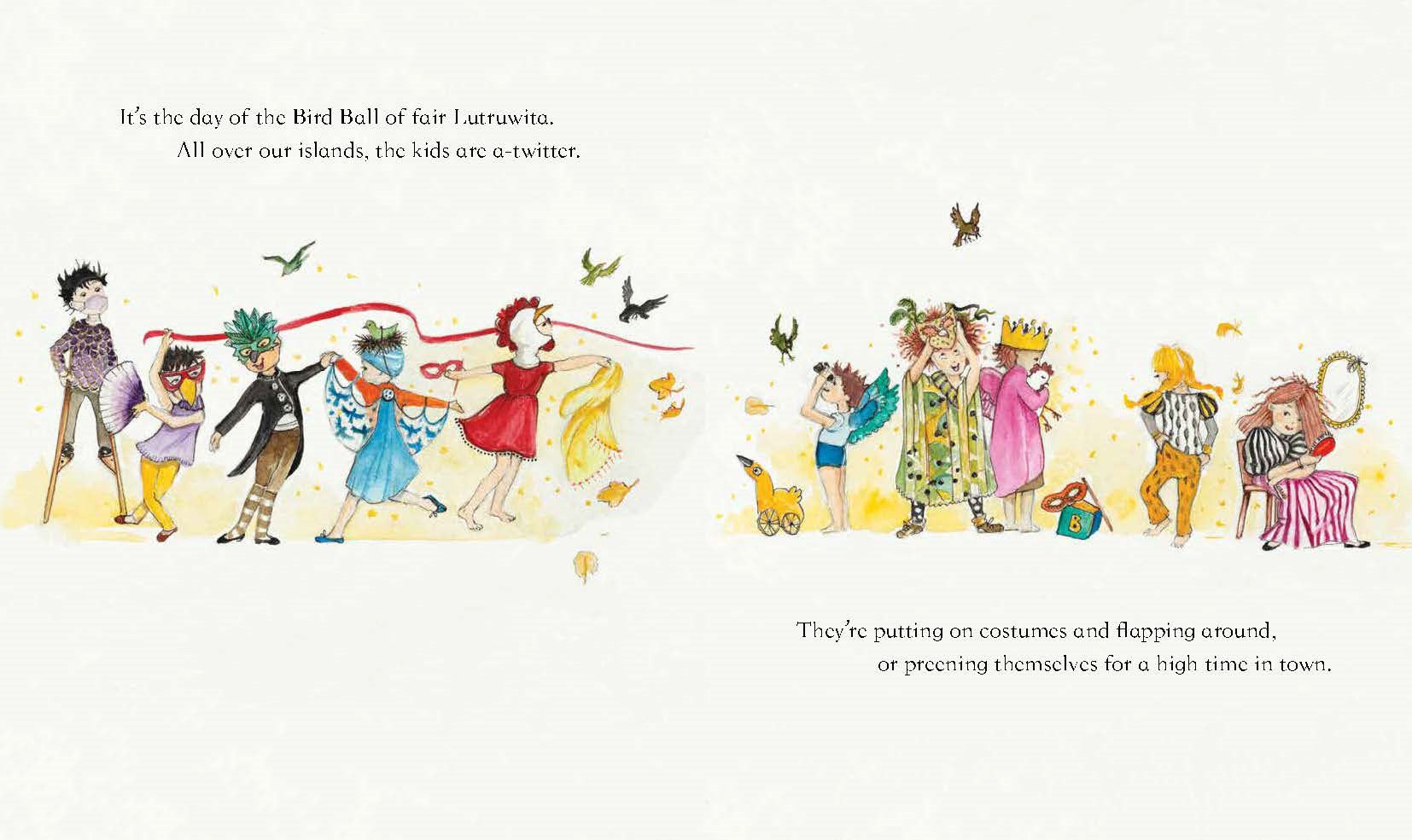 The Bird Lovers’ Ball is a blend of fantasy and non-fiction, involving children dressing up as native Tasmanian birds and going to a ball. Anne Morgan’s beautifully crafted rhyming text dances delightfully around Lois Bury’s exquisite artwork.