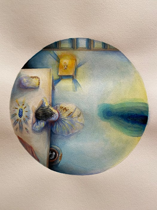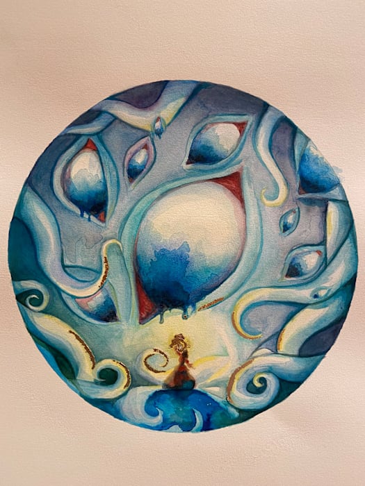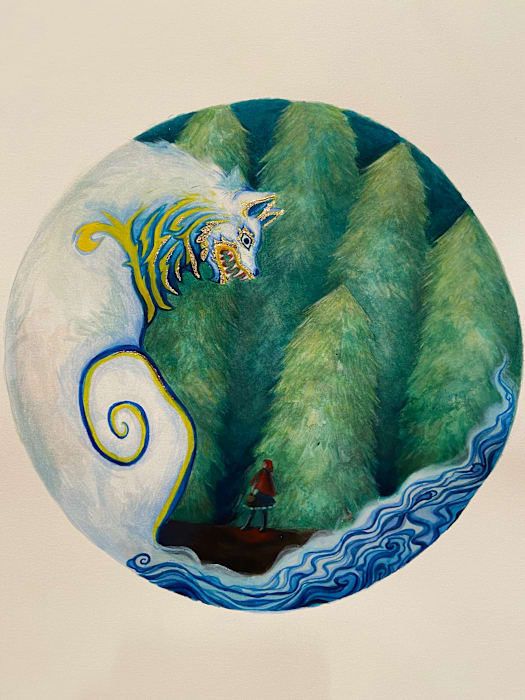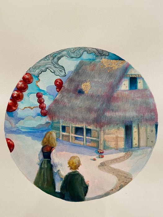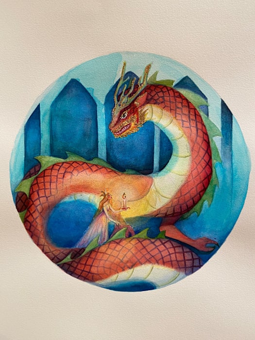 I firstly wished to create artwork in relation to folklore or fairy tales. I debated whether to focus on Eastern or Western stories. But in the end, I thought it would be interesting to see if I could try to intertwine the two different cultures together. I aim to show and explore the similarities of Western and Eastern cultures by contrasting cultural tales which mirror important plot points in both cultures. For example, Cinderella and Yè Xiàn (叶限). I furthered this idea by drawing on and melding together, art styles well-known in Western and Eastern cultures such as Ukiyo-e, a very famous part of Japanese artworks. Furthermore, ukiyo-e inspired Art Nouveau, an art style which became a prominent aesthetic during the Romantic era in Europe. Some of the works, especially acrylic parts, were also influenced by impressionism style I utilised watercolours, gouache and acrylics. I juxtaposed watercolours against acrylics (which I mainly used for parts of foreground or for the focus of the artwork) to better highlight the focal points of the drawings since acrylics have a more three-dimensional texture. When trying to make smaller details stand out (for example, ribbons or some rocks) I used gouache to make the objects more vibrant against the watercolours.