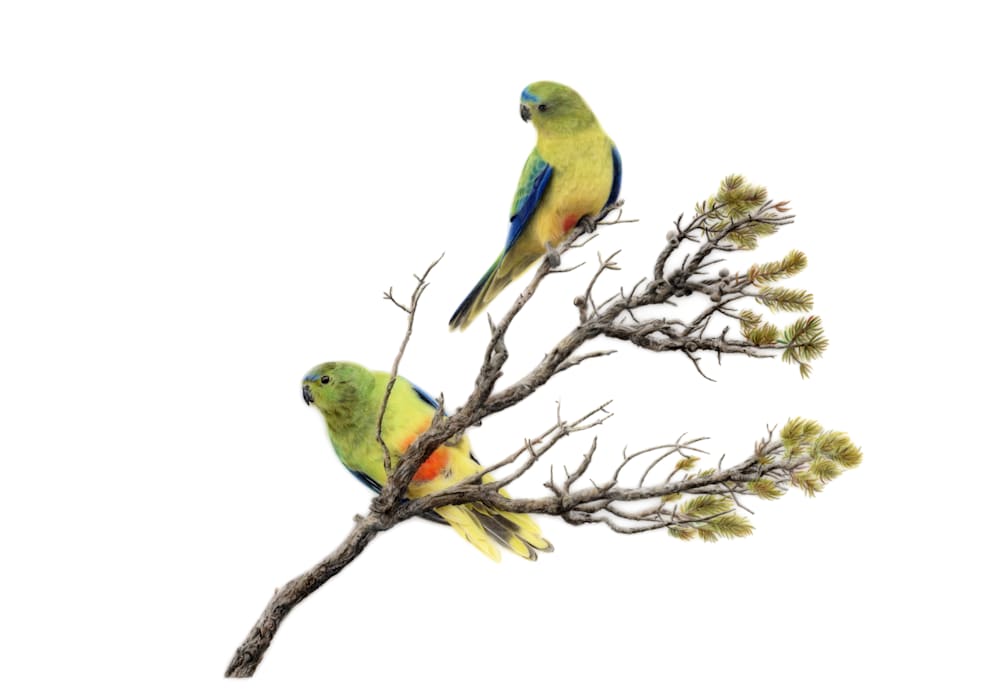 Rachel Harris and Tasha Waller specialise in realistic colour pencil drawings of Tasmanian wildlife. Their first exhibition, Above and Below, at SOCIAL Gallery in late 2024, was the culmination of two years of work and explored the connections between art, science and conservation. More than 30 meticulously detailed drawings and fine art prints were on display, featuring Tasmanian birds, mammals and marine life. Many will be familiar and charismatic, while others have historically been taken for granted, ignored, or even persecuted.