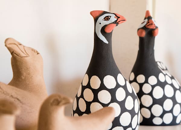 It’s not only birds and animals that have captured Eve Howard’s desire to transform the clay. She also creates delightful pinch pots, inspired by the local banksias, which are ideal for drinking tea out of.
