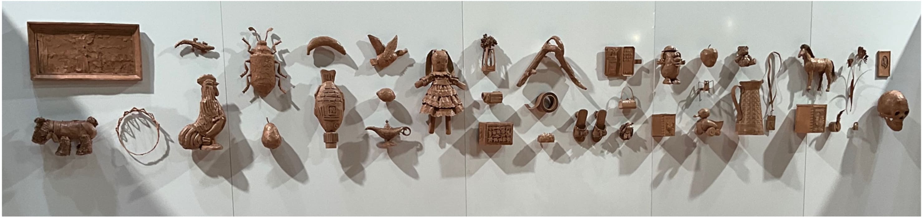 This exhibition explores the way people imbue objects with meaning and memory, transforming them into reflections of identity. I’ve chosen 38 objects that hold personal significance, inspired by a wall my mother created in our home—a maximalist display of objects from our lives. This wall captured what our family valued most, linking us to our home in Yugoslavia and our love of creativity. Motivated by her approach, I curated my own collection of objects that similarly resonate with my experiences. Displayed in a 1.8 meter-tall row, I invite viewers to engage with each object, drawing them into a narrative as they contemplate the significance of each item.